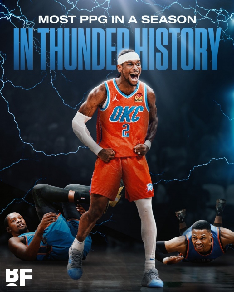 预定MVP?SGA场均得分达到33分 超越MVP赛季的KD威少排队史第一
